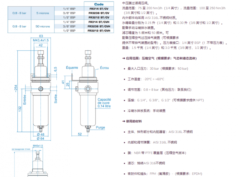SENGA 压缩空气不锈钢过滤调节器系列